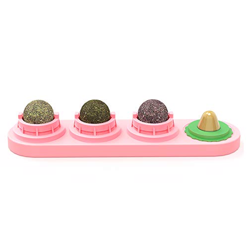 Haokaini Palline di Erba Gatta Giocattolo da Leccare per Gatti Spuntini Commestibili Naturali di Erba Gatta Giocattolo Leccata Girevole Giocattolo Stick-On Wall Palla di Erba Gatta