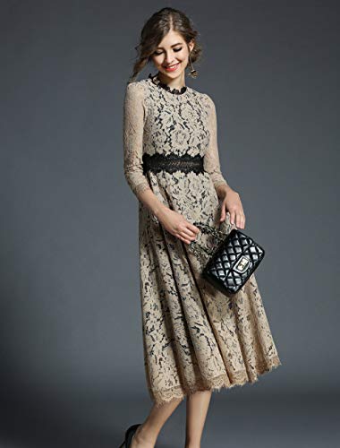 HAOKEKE Abito Longuette in Pizzo da Donna Elegante Abito Longuette in Pizzo Formale Solido da Donna per Abbigliamento da Lavoro Marrone Chiaro XS