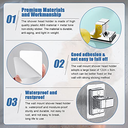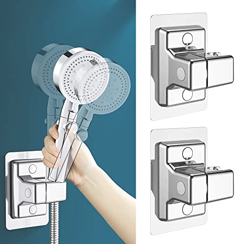 HAOMEEDUO 2 Pezzi Supporto Adesivo Soffione Doccia Portasoffione Autoadesivo Regolabile a 360° Staffa Adesiva Senza Fori, Attacco Universale per Montaggio a Parete (12 * 8 cm)