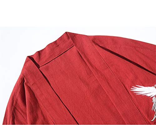 Haori Uomo Giacca Moda Cloak Abiti Giapponesi Kimono Ricamo Capispalla Cardigan Casual Hippie Vinorosso 3XL