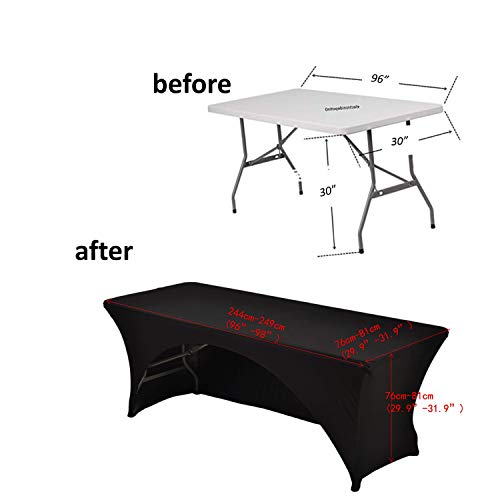 HAORUI Back Opening Arched for Easy Access Spandex Stretch Lycra Table Cover Cloth 8ft Foot Rectangular Fit Wedding Banquet Trestle Table (Nero)