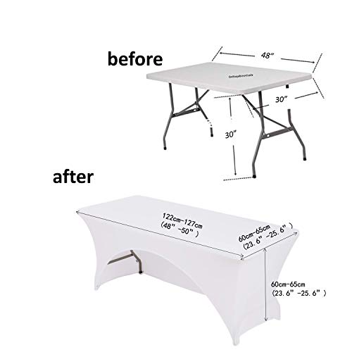 HAORUI Back Opening Arched for Easy Access Spandex Stretch Lycra Table Cover Cloth 4ft Foot Rectangular Fit Wedding Banquet Trestle Table (Bianco)