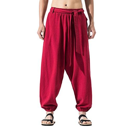 HAORUN Uomini Cinese Kung Fu Pantaloni Tai Chi Pantaloni Pantaloni Casual Allentato Regolare Fit, Rosso, M