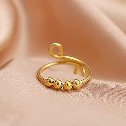 Haorw Donne Girevole Fidget Perline Anelli Anti Stress Ansia Spinner Apertura Anello di Pace Gioielli di San Valentino Oro