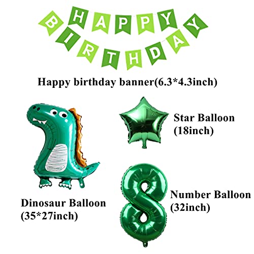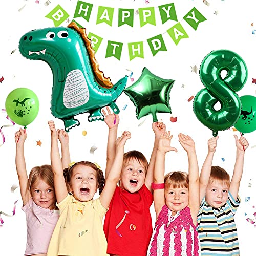 Haosell Dino - Palloncini per compleanno, 8 anni, grande dinosauro, 8° compleanno, decorazione per bambini, motivo: dinosauro