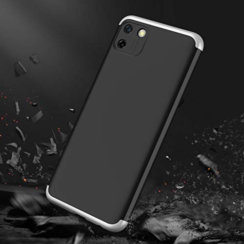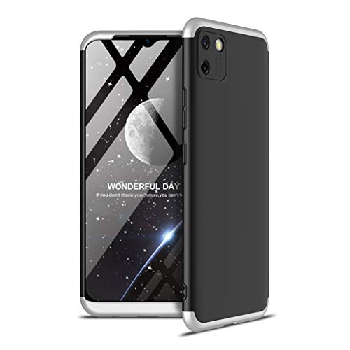 HAOTIAN Cover per Realme C11 Cover, Custodia Protettiva con Tutto Il Corpo Tocco Morbido Setoso, Staccabile Silicone Morbido Doppio Strato Antiurto Protettivo Custodia, Argento/Nero
