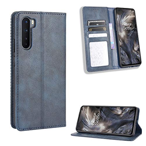 HAOTIAN Leather Folio Cover per OnePlus Nord Cover, PU + TPU Leather Wallet Case, Premium Filp Cover Custodia in Pelle Portafoglio con Funzione Stand, Blu