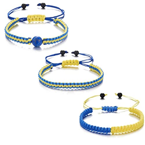 Haowul Bracciale in Ucraina Con Perle Di Pietra, 3 Pezzi Regolabili a Mano Intrecciatura Preghi Per Braccialetti Di Amicizia Ucraina
