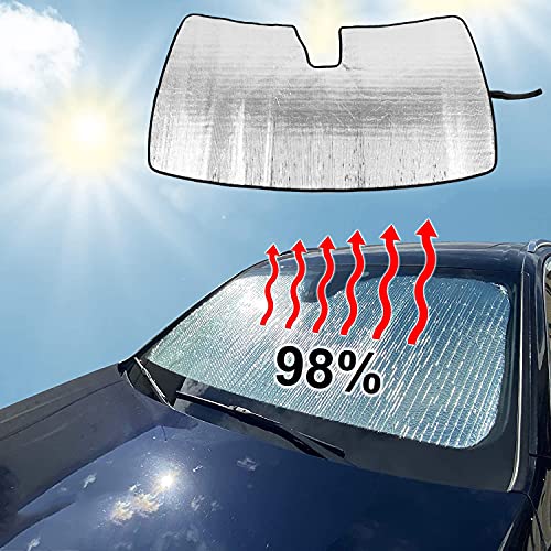 MANTENERE IL VEICOLO FRESCO - L'ombreggiatura del parabrezza devia il 99% della luce solare e del calore, mantenendo l'interno del veicolo a una temperatura ideale e riducendo il consumo di carburante.