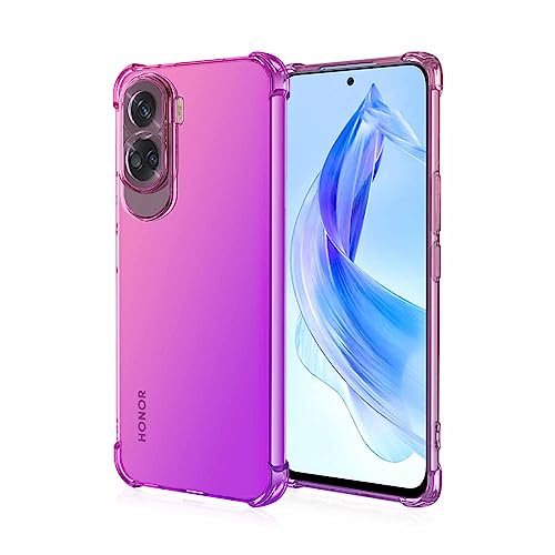 Haoye Cover per Honor 90 Lite, Custodia in TPU a Gradiente Colori, [Rinforzare la con Angoli] Custodia Trasparente Silicone Morbida Ultra Sottile Case (Rosa/Viola)
