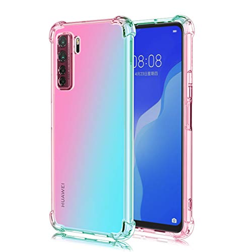 HAOYE Cover per Huawei P40 Lite 5G Cover, Custodia in TPU a Gradiente Colori, [Rinforzare la con Quattro Angoli] Custodia Trasparente Silicone Morbida TPU Ultra Sottile Case (Rosa/Verde)
