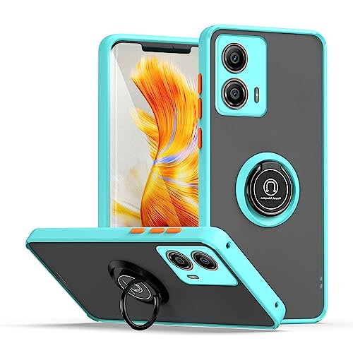 HAOYE Cover per Motorola Moto G53 5G con Girevole Anello, Traslucido Custodia con Supporto Magnetico Auto, Silicone TPU e PC Doppio Strato Protettiva Bumper. Cielo Blu