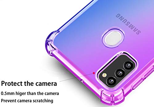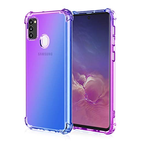 HAOYE Cover per Samsung Galaxy M21 Cover, Custodia in TPU a Gradiente Colori, [Rinforzare la con Quattro Angoli] Custodia Trasparente Silicone Morbida TPU Ultra Sottile Case (Viola/Blu)