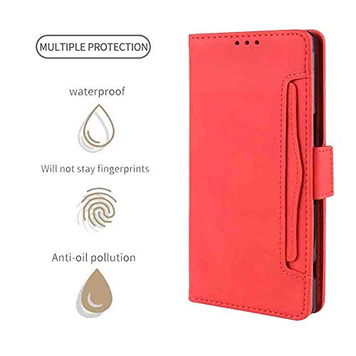 HAOYE Cover per UMIDIGI Power 3 Cover a Portafoglio, Custodia Chiusura Magnetica Flip Case Stile con Supporto di Stand/Carte Slot, Protettiva Custodia per UMIDIGI Power 3, Rosso