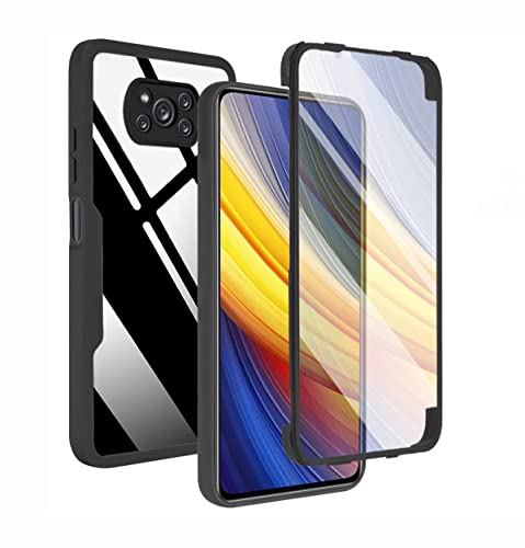 Haoye Cover per Xiaomi Poco X3 PRO/Poco X3 NFC con Proteggi Schermo, Trasparente Custodia 360 Gradi Silicone TPU e PC Doppio Strato Protettiva Case Bumper. Nero