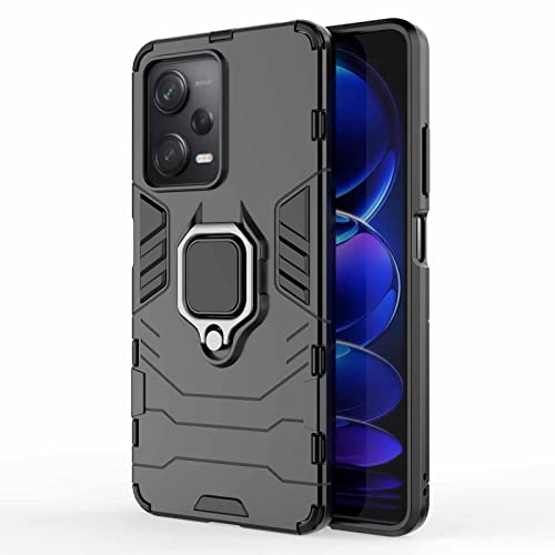 Haoye Cover per Xiaomi Redmi Note 12 PRO 5G con 360 Gradi Girevole Anello, Armor Custodia con Supporto Magnetico Auto, Silicone TPU e PC Protettiva Bumper Case. Nero