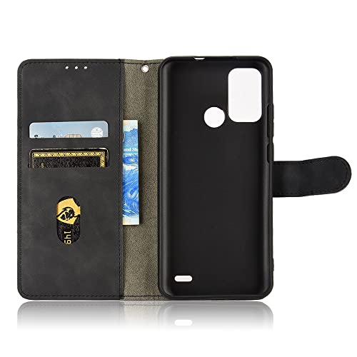 Haoye Leather Folio Cover per ZTE Blade A72 5G Cover, PU + TPU Leather Wallet Case, Premium Filp Cover Custodia in Pelle Portafoglio con Funzione Stand, Nero