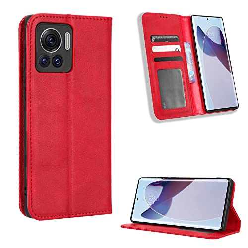 Haoye Leather Folio Cover per Motorola Moto Edge 30 Ultra Cover, PU + TPU Leather Wallet Cover, Premium Filp Case Custodia in Pelle Portafoglio con Funzione Stand, Rosso