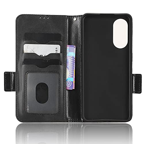 Haoye Leather Folio Cover per Oppo Reno8 T (Reno 8T), PU Premium Filp Case Custodia in Pelle Portafoglio con [Funzione Stand] [Porta Carte] [Magnetica], Nero