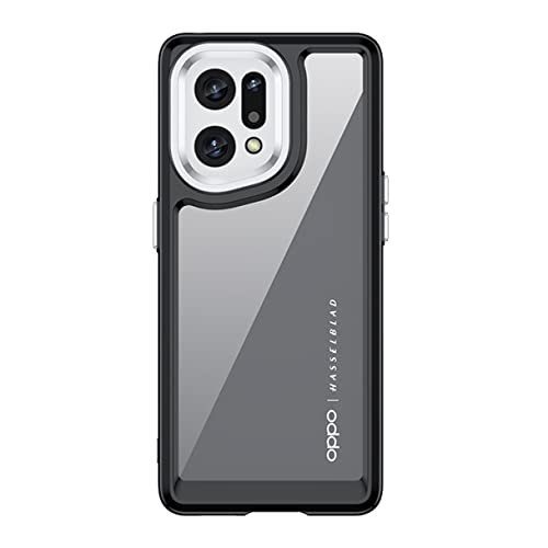 HAOYE Trasparente Cover per Oppo Find X5 5G, Elegante Custodia Ultra Sottile Rugged Silicone PC Dorso Duro + TPU Bumper Antiurto Cover Case, Nero