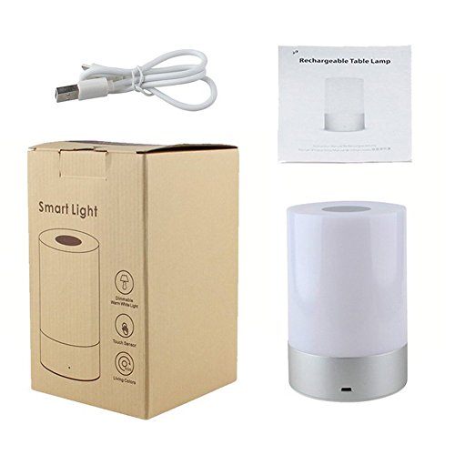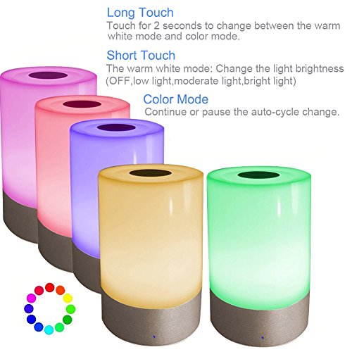 Haozi, lampada a tocco da comodino, con sensore LED, da atmosfera, funzione luce notturna + ricaricabile con attacco USB, luce bianca calda regolabile e funzione cambia colore RGB