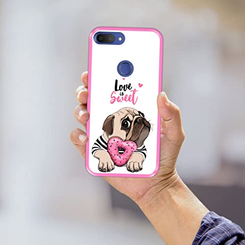 Hapdey Custodia per [ Alcatel 1S 2019 ] Disegni [ Pug Adorabile del Cucciolo con Una Ciambella Rosa del Cuore ] Cover Guscio in Silicone Flessibile Rosa TPU