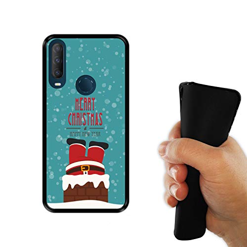 Hapdey Custodia per [ Alcatel 1S 2020 ] Disegni [ Natale, Babbo Natale Sta scendendo dal Camino ] Cover Guscio in Silicone Flessibile Nero TPU
