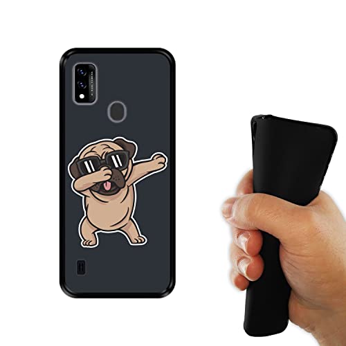 Hapdey Custodia per [ ZTE Blade A51 ] Disegni [ Pug tamponando ] Cover Guscio in Silicone Flessibile Nero TPU