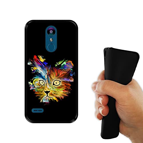Hapdey Custodia per [ LG K9 - K8 2018 ] Disegni [ Ritratto di Gatto in Colori Vivaci ] Cover Guscio in Silicone Flessibile Nero TPU