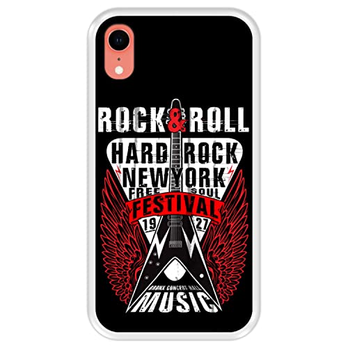 Hapdey Custodia per [ iPhone XR ] Disegni [ Rock Star - Rock And Roll Vintage Poster 1 ] Cover Guscio in Silicone Flessibile Transparente TPU