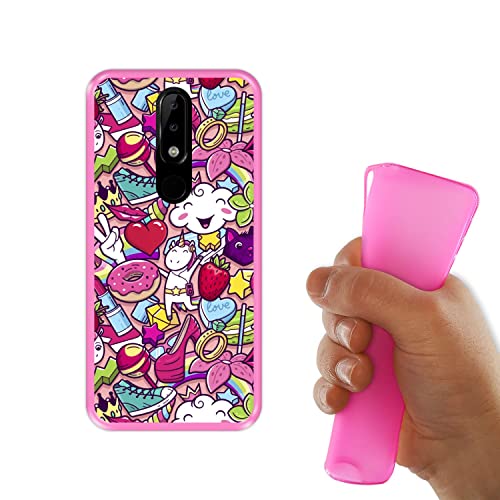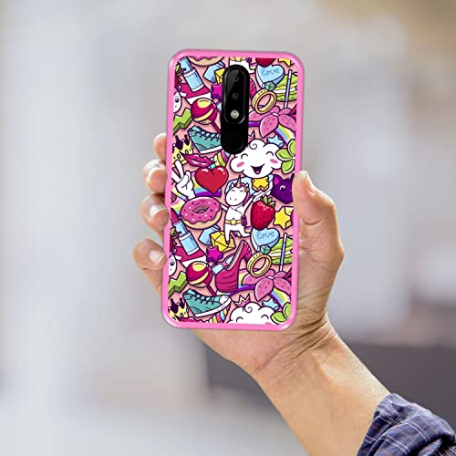 Hapdey Custodia per [ Nokia X5-5.1 Plus ] Disegni [ Modello di Graffiti, scarabocchi da Ragazza ] Cover Guscio in Silicone Flessibile Rosa TPU
