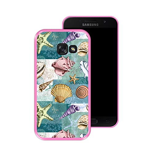 Hapdey Custodia per [ Samsung Galaxy A3 2017 ] Disegni [ Modello con Conchiglie, Coralli e Stelle Marine ] Cover Guscio in Silicone Flessibile Rosa TPU