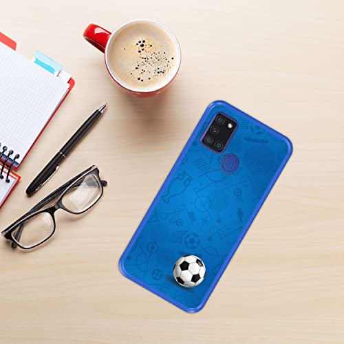Hapdey Custodia per [ Samsung Galaxy A21s ] Disegni [ Modello Sportivo con Pallone da Calcio ] Cover Guscio in Silicone Flessibile Blu TPU
