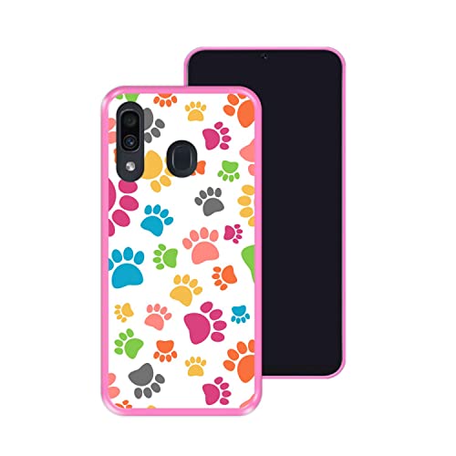 Hapdey Custodia per [ Samsung Galaxy A20 - A30 ] Disegni [ Modello di Zampa di Cane colorato ] Cover Guscio in Silicone Flessibile Rosa TPU