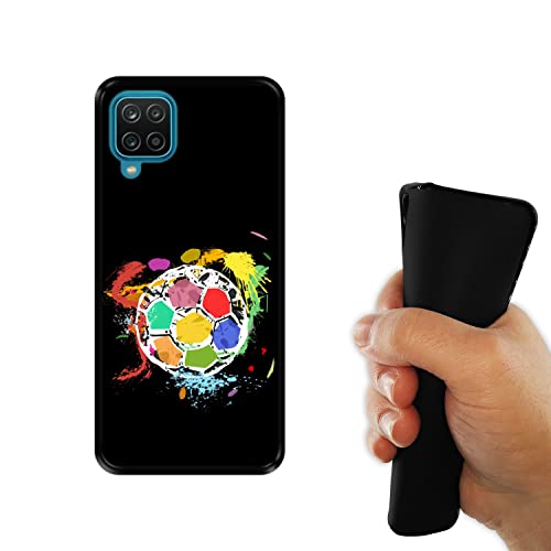 Hapdey Custodia per [ Samsung Galaxy A12 ] Disegni [ Pallone da Calcio Astratto e Multicolore ] Cover Guscio in Silicone Flessibile Nero TPU