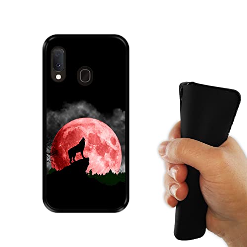 Hapdey Custodia per [ Samsung Galaxy A20e ] Disegni [ Luna Rossa, Lupo Che Ulula ] Cover Guscio in Silicone Flessibile Nero TPU