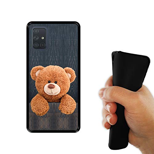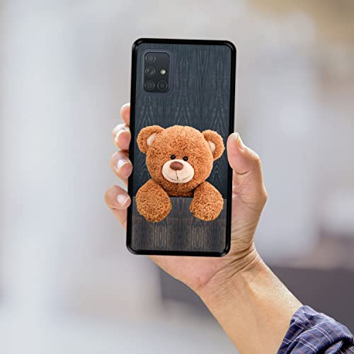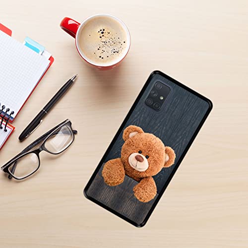 Hapdey Custodia per [ Samsung Galaxy A71 ] Disegni [ Tenero Orsacchiotto Dietro Un recinto ] Cover Guscio in Silicone Flessibile Nero TPU