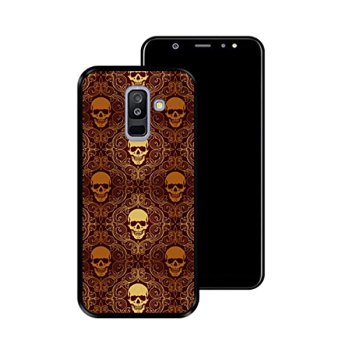Hapdey Custodia per [ Samsung Galaxy A6 Plus 2018 ] Disegni [ Teschi d'oro, Modello Astratto ] Cover Guscio in Silicone Flessibile Nero TPU