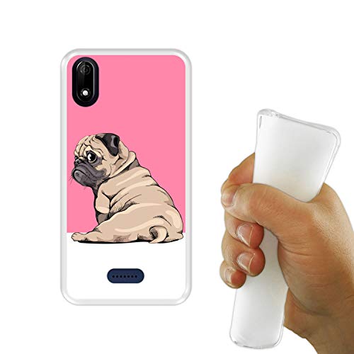 Hapdey Custodia trasparente per Wiko Y60, motivo: cuccioli beige Pug Posando 3 ] in silicone flessibile TPU
