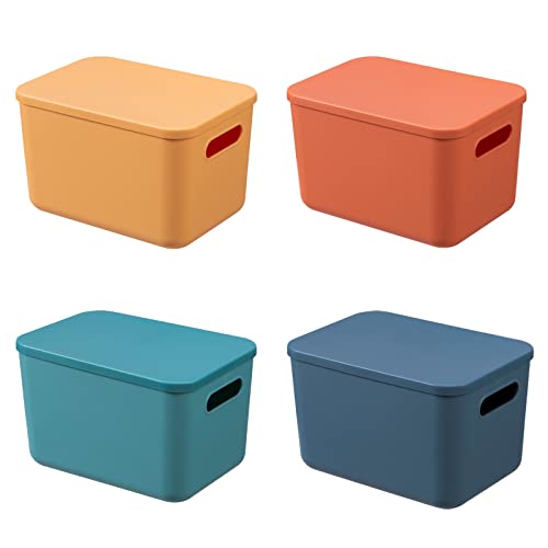 HapiLeap Scatole portaoggetti con coperchio, impilabili in plastica per scaffali, cucina, bagno, sala giochi, aula per ufficio, asilo, 24,5 x 17,5 x 16 cm, (4 pezzi)