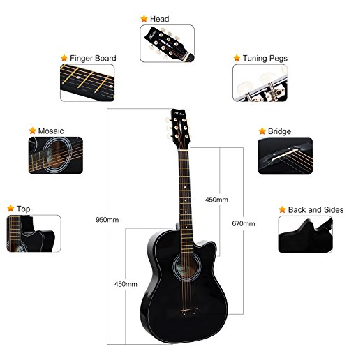 Hapilife-Chitarra Acustica, Dimensioni 3/4 38 Nero