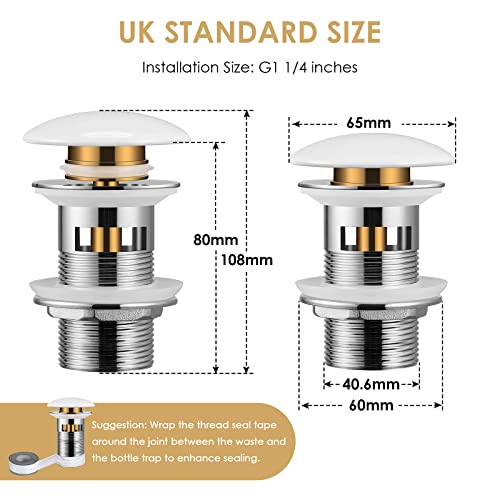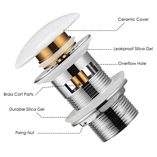Materiali di alta qualità: i rifiuti per lavabo sono dotati di ottone H59 senza piombo e ceramica bianca di alta qualità, resistenti in modo efficiente a graffi, corrosione e ruggine. Il gel di silice resistente e di alta qualità aiuta a conservare bene l'acqua e prevenire perdite d'acqua.