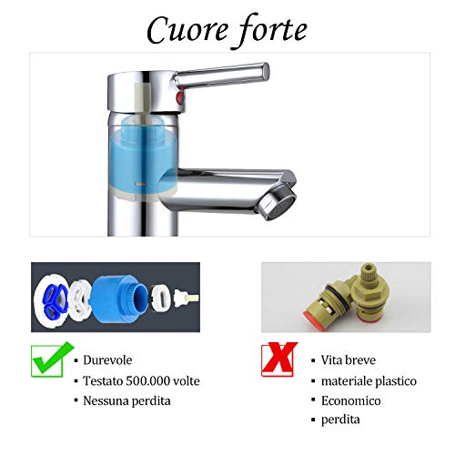 Facile da Usare e da Installare: una buona cartuccia in ceramica consente di aprire o arrestare comodamente il flusso d'acqua ed è facile da installare con le istruzioni dettagliate e i connettori per tubi flessibili.