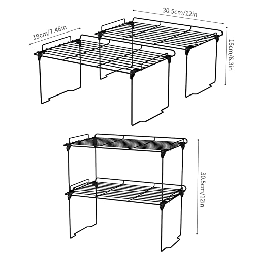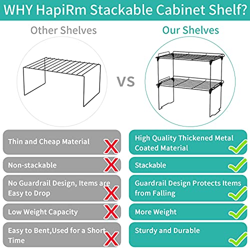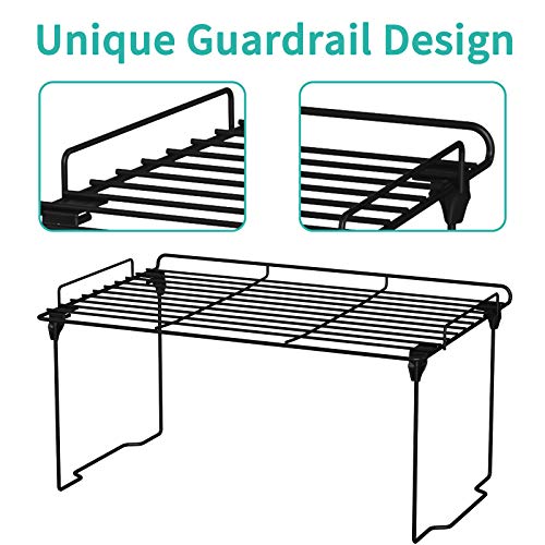 HapiRm 2 Pacchetti Ripiani Cucina Salvaspazio, Ripiano Salvaspazio Cucina con Guardrails Design, Organizer Sottolavello Cucina, Mensole Cucina Ideale per Stoviglie e Alimenti, Nero, 2 Pezzi