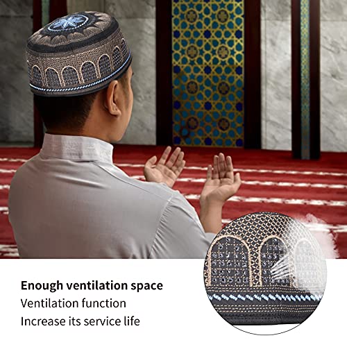 Hapivida Cappello Musulmano Islamico Cappello a Cuffia con Ricamo Nero Cappello a Maglia in Cotone Musulmano da Preghiera Islamico da Uomo per Eid Ramadan Pray Eid Gift(59)