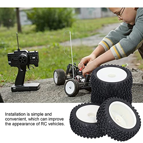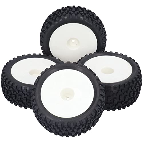 Hapivida 1/10 Pneumatici Auto RC, 4pcs Pneumatici in Gomma per Buggy con Telecomando+Cerchioni per Ruote, RC Accessorio per Ruote Gommate per Racing Car Short-Course Truck Buggy Fuoristrada