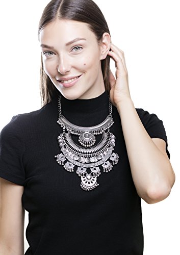 Happiness Boutique Collana Statement Stile Gipsy in Argento | Lunga Collana XXL Oversize Multifilo con Pendenti Tondi Senza Nickel