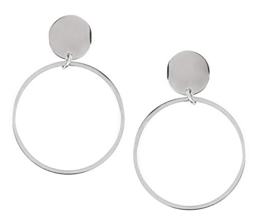 Cura & Consigli di Stile: Orecchini in acciaio inossidabile con pendente a forma di cerchio piatto fissato ad un cerchio sottile. Stilosi, versatili e perfetti per tutti i giorni.
