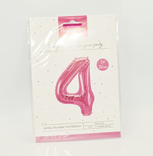 Happium - Palloncino Gigante in Foil, Numero 4, Rosa 90cm