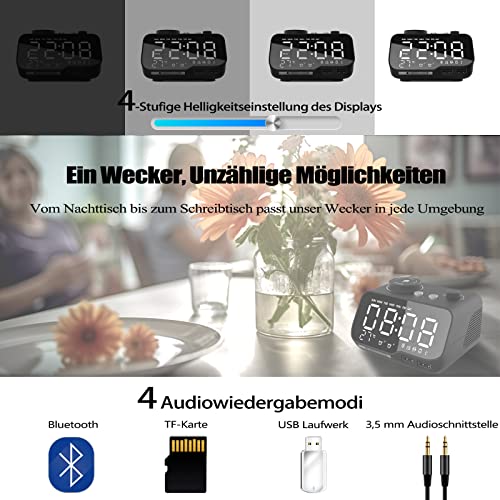HAPPMY Sveglia digitale con doppia sveglia e funzione snooze, indicatore LED con volume regolabile e luminosità incluso stereo Bluetooth, porta AUX e 2 porte di ricarica USB.